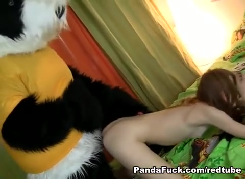 Рыжую сучку трахнул мужик, переодетый в панду