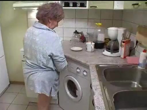 Старушка возилась возле стиральной машинки и тут на помощь подоспела компания из молодых парней... Парни развели старушку на групповой секс, хотя последняя была не против вспомнить молодость.