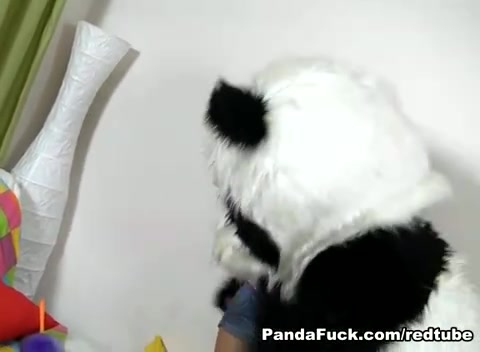 Горячая брюнетка забавляется с пандой