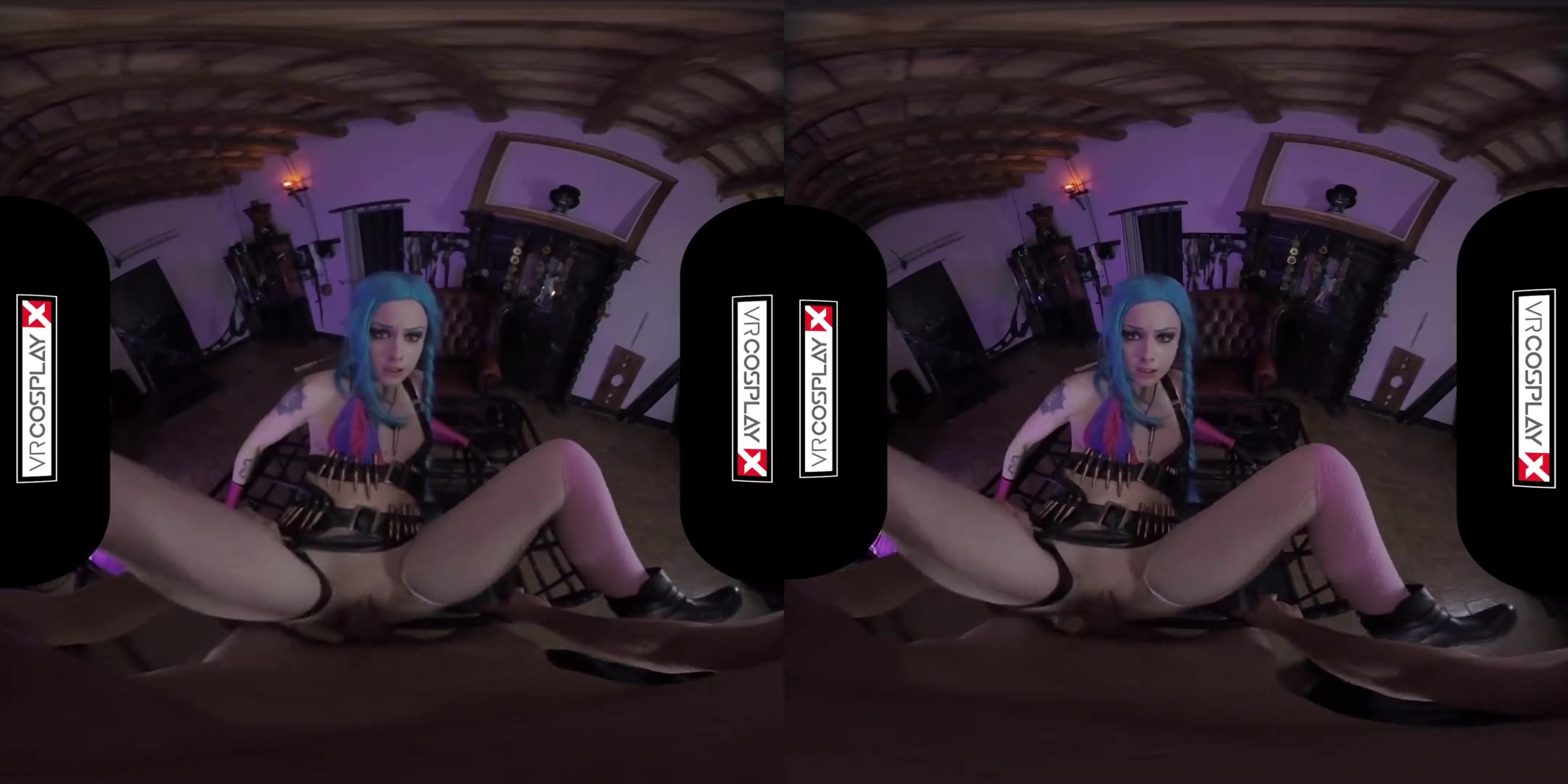 VR-porn: синеволосая красотка с длинными косами
