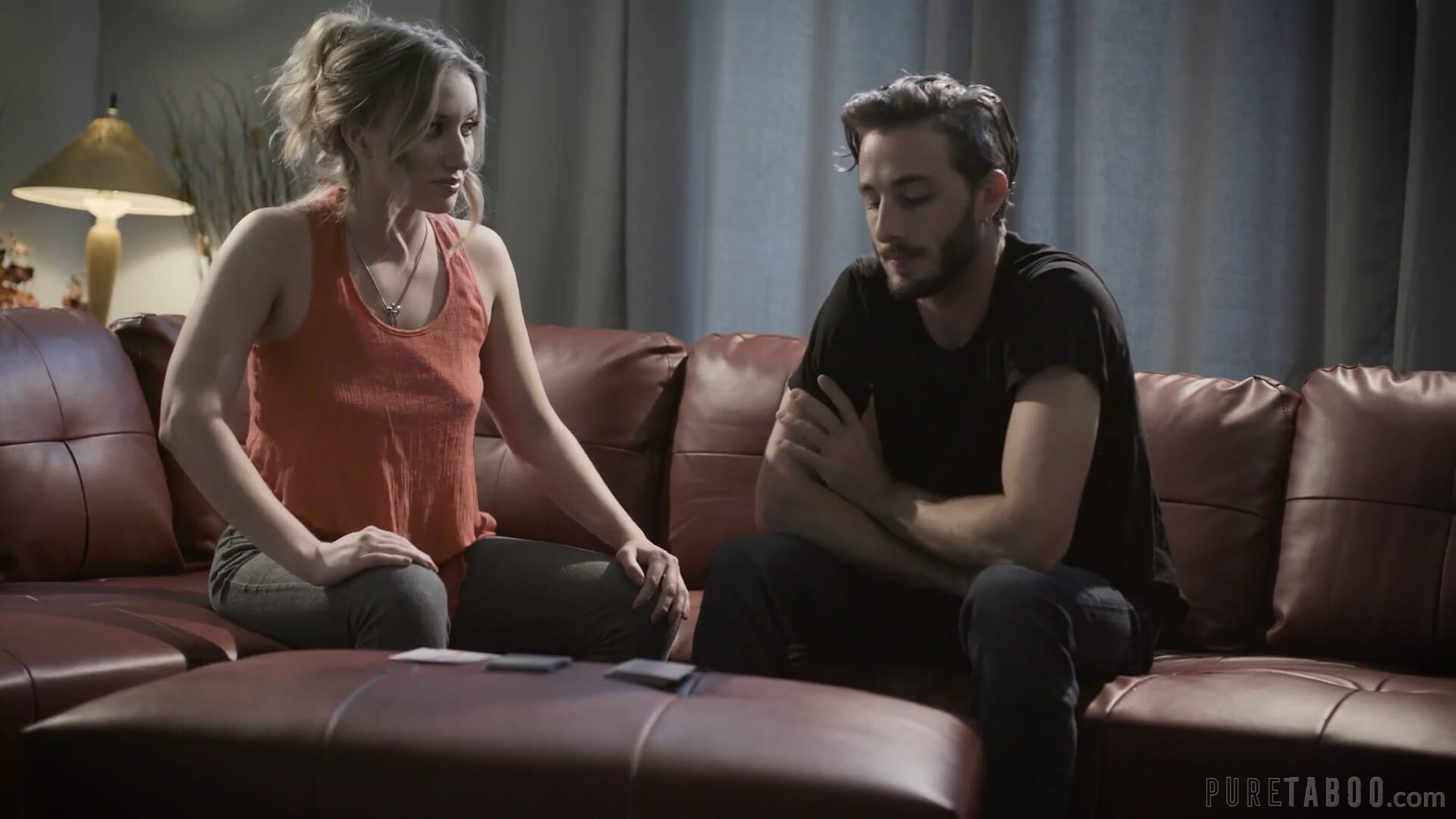 Порно с русским переводом от студии PureTaboo со смыслом и сюжетом. Сцена начинается с Риты (Райли Рейес), находящейся в своей гостиной, когда кто-то звонит в дверь. Она озадачена и говорит про себя вслух, что никого не ждет. Она открывает дверь. Там стоит молодой человек (Лукас Фрост), выглядящий несчастным и мокрый от пота, с рюкзаком в руках. Эм... тетя Рита? — осторожно спрашивает он. Оливер? — недоверчиво спрашивает Рита. 'Это правда ты?! Я не видела тебя с твоего 14-летия, а это было... как минимум 5 лет назад», — говорит Рита. Она приглашает его внутрь, упоминая, как душно на улице. Он садится на диван. Он очень застенчив и уклончив в отношении того, почему он появился. При поддержке Риты он в конце концов признает, что переехал в город по прихоти своей девушки. Но практически сразу после переезда она ему изменила и выгнала из своей квартиры. У него нет работы, и он здесь никого не знает, кроме тети Риты. В конце он смущенно говорит, что потратил на переезд все свои сбережения и у него даже денег нет. Поскольку ему больше некуда идти, Рита предлагает ему остаться с ней. Оливер встает, чтобы с благодарностью обнять ее, и с облегчением принимает ее предложение. Рита вырывается из объятий и с фальшивым беспокойством замечает, что он весь в поту, бедняжка! Она настаивает на том, чтобы постирать и посушить его одежду. Снимая рубашку, он еще раз благодарит ее за то, что она позволила ему остаться, добавляя, что она должна сообщить ему, что он может сделать, чтобы отплатить ей. Он сделает все что угодно. Тетя Рита смотрит на его тело без рубашки. Она облизывает губы, когда на нее падает хищный взгляд. «Я уверена, что что-нибудь придумаем», — говорит она улыбаясь. Позже в тот же день тетя Рита намеренно врывается к нему, когда он выходит из душа, выставляя напоказ свое обнаженное тело. Несколько дней спустя Оливер и Рита играют в карты. Они вместе смеются и шутят, играя сумасшедшие восьмерки. Они ведут светскую беседу, и в конце концов Рита говорит, что ей немного наскучила игра, в которую они играют. Возможно, им стоит сыграть что-нибудь более... взрослое. После того, как Оливер осторожно спрашивает ее, что она имеет в виду, она, озорно подмигивая, предполагает, что имеет в виду стрип-покер. Он не может понять, шутит ли она, и с нервным смехом говорит, что это, наверное, не та игра, в которую должны играть парень и его тетя, даже если она формально его тетя. Хм, ок, улыбается Рита .А как насчет этого - каждый из них вытянет карту, и тот, кто вытянет старшую карту, сможет задать другому вопрос, и они должны ответить только правду? — предлагает Рита. Оливер немного колеблется, но, возможно, из-за своего желания сыграть во что-нибудь кроме стрип-покера, соглашается. Они тянут карты. Рита получает старшую карту. — Ты хочешь меня трахнуть, Оливер? — спрашивает Рита. Оливер в шоке. Что?! Н-НЕТ, конечно нет! Он заикается. Рита кладет руку на ногу Оливера, но он отмахивается. Он вскакивает, заикаясь, оправдываясь тем, что он очень устал и ему нужно немного отдохнуть, и поспешно выходит из комнаты. На следующий день Рита подходит к Оливеру, который сидит на диване. Она здоровается, садясь рядом с ним. Она беспечна, а он ведет себя вежливо, но сейчас ему явно некомфортно рядом с ней, и он незаметно отходит от нее на диване. Рита придвигается ближе к нему, деликатно намекая, что ей очень жаль, что вчер